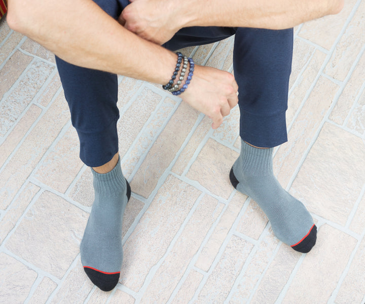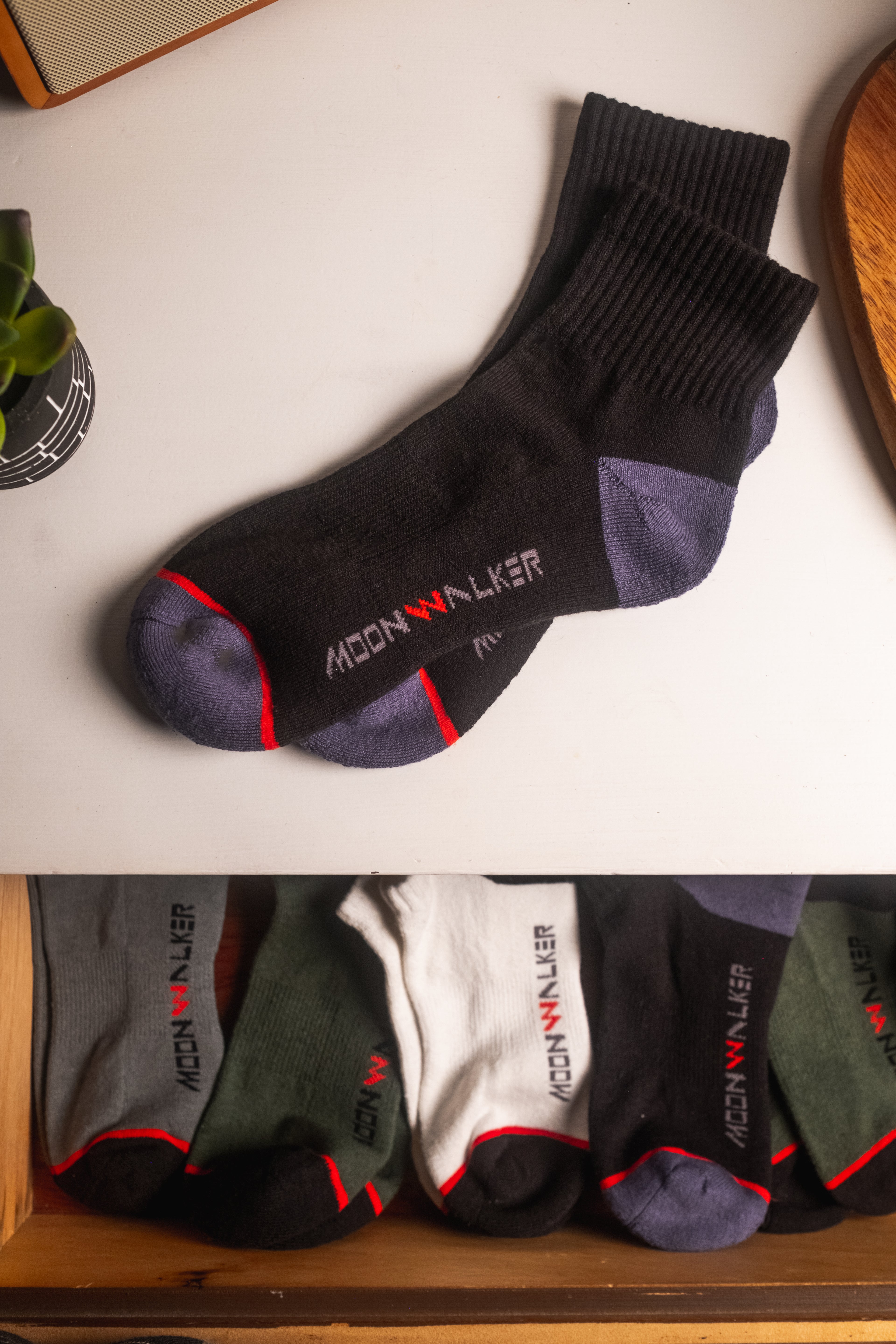 Our Quarter Crew socks offer the perfect balance of coverage and comfort. Soft, breathable, and sweat-resistant, these socks keep your feet fresh and dry throughout the day. Designed to support you no matter how busy your day gets, these socks provide a secure and comfortable fit that feels anything but ordinary.